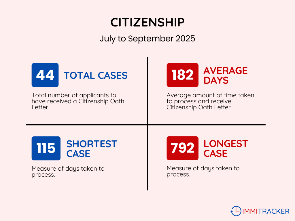 Citizenship processing times back in Q3 2025 were around 6 months - significantly quicker than what the IRCC website was estimating and what it looks like applicants are experiencing in 2026 (based on our community feedback)