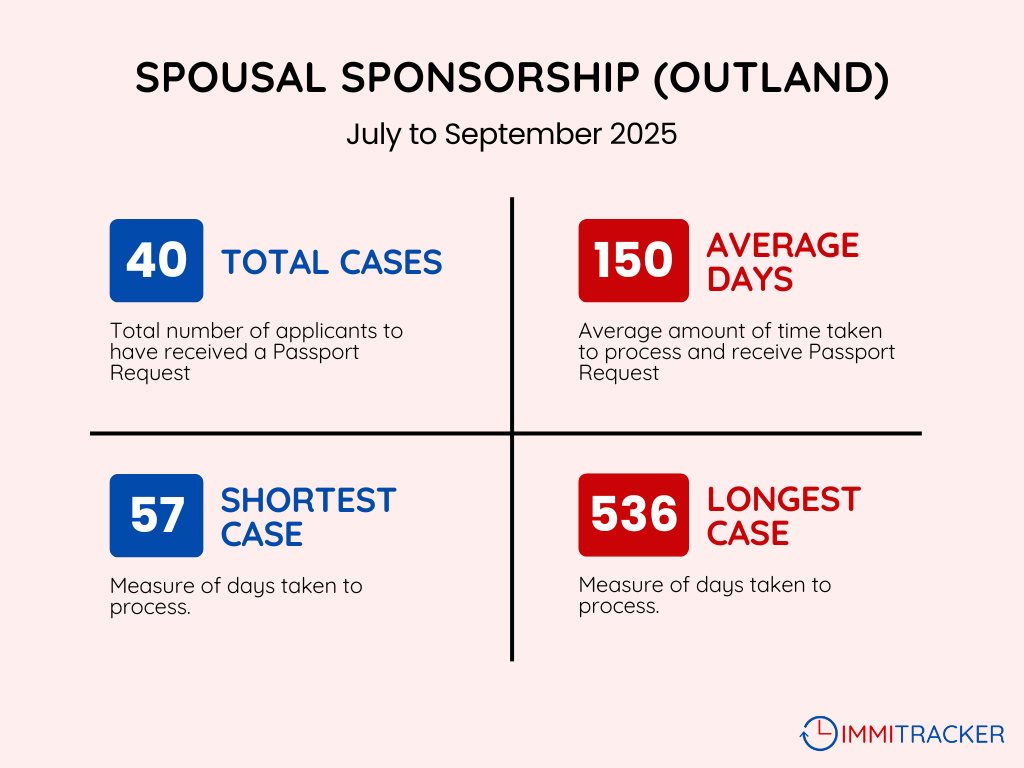 Inland Spousal Sponsorship remains very consistent with almost no variation in timelines from case-to-case. It is also quite slower than the Outland Spousal Sponsorship with over 200 days extra wait time