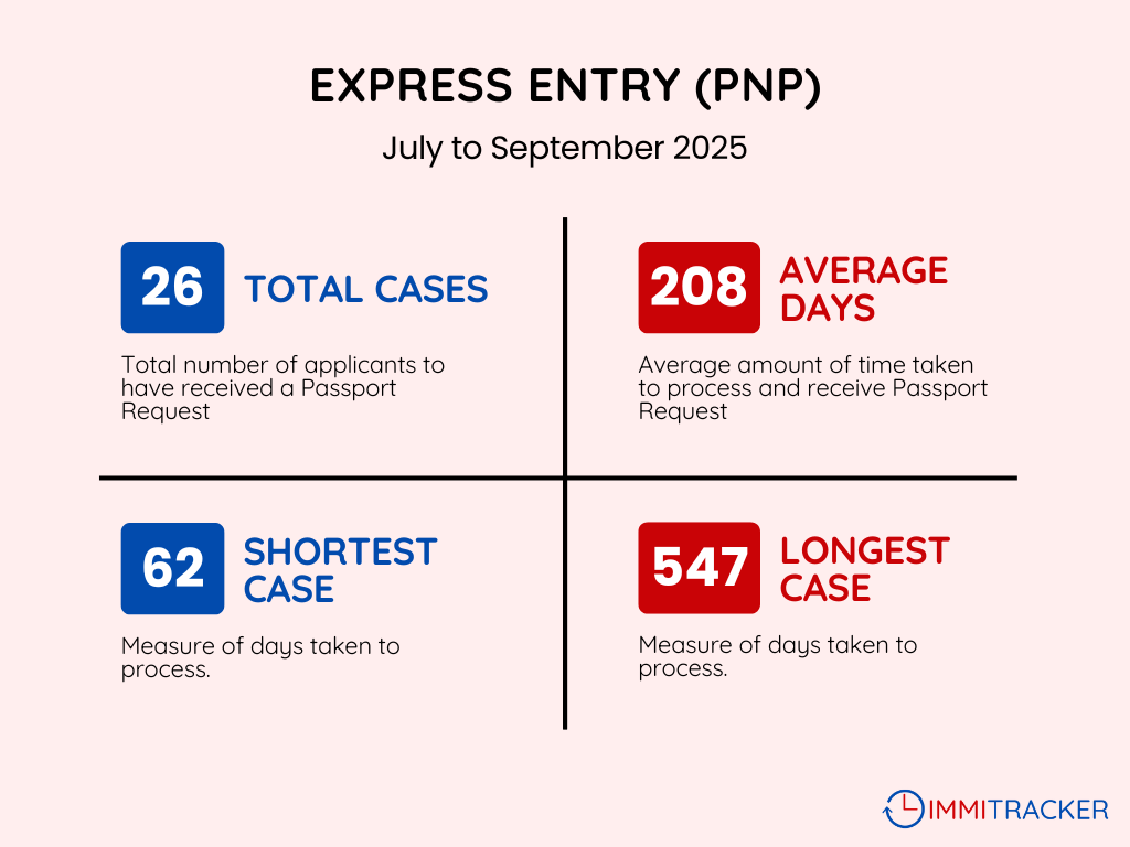 During the third quarter, we observed a total of 26 cases that received their PPR through the Provincial Nominee Program (PNP). Processing times showed an average of 208 days or 6.9 months to receive approval. This statistic is a significant decrease from last quarter's average of 218 days.