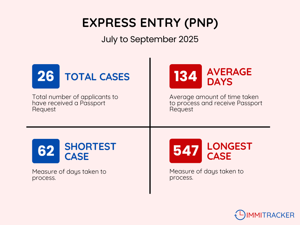 During the third quarter, we observed a total of 26 cases that received their PPR through the Provincial Nominee Program (PNP). Processing times showed an average of 134 days or 4.5 months to receive approval. This statistic is a significant decrease from last quarter's average of 218 days.